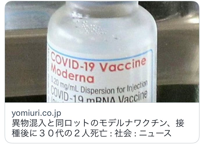 モデルナワクチン異物混入‼️早急にワクチンナンバー確認を ...
